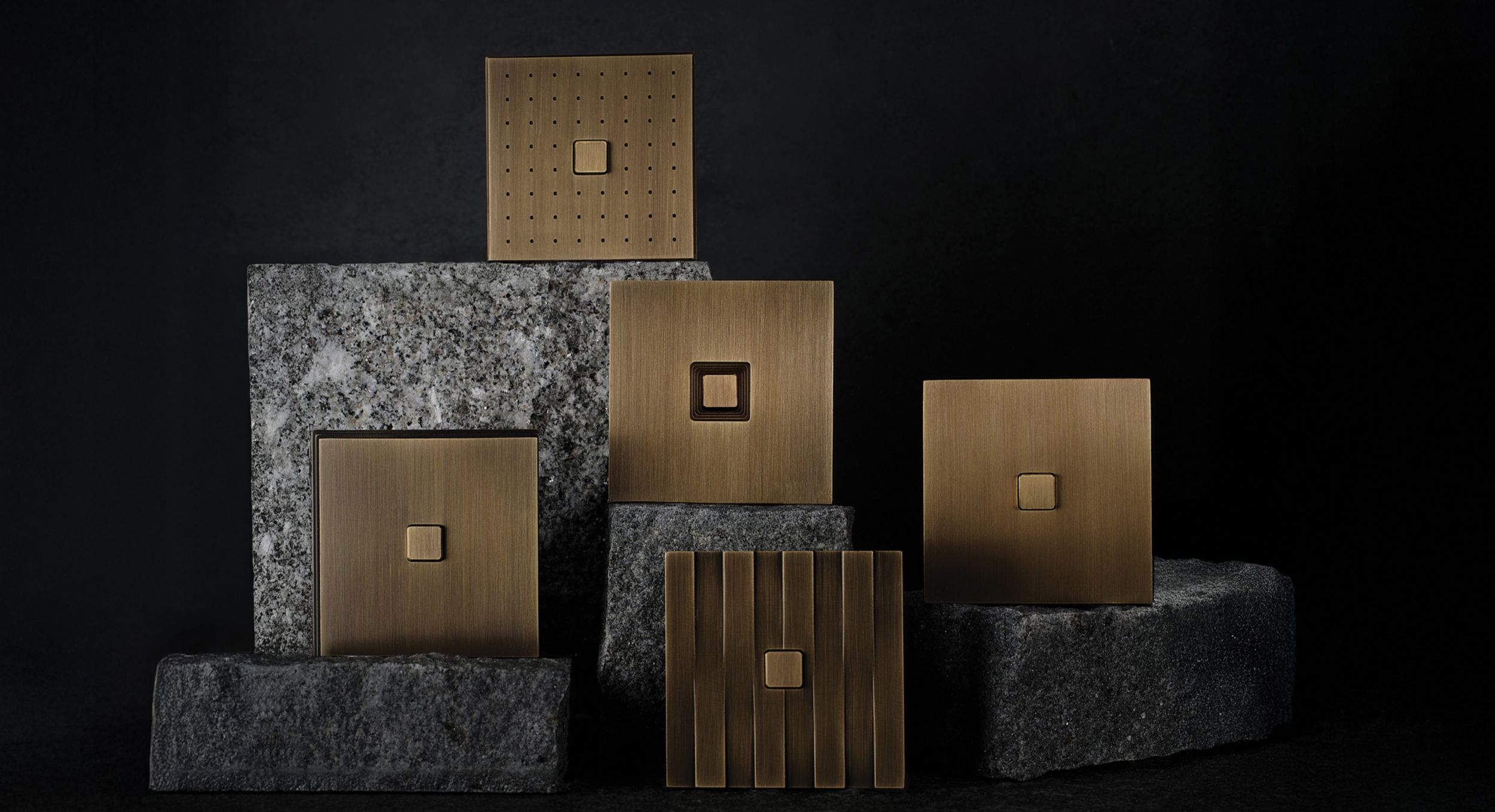 Plan, Volume, Angle, Point et Ligne : cinq séries, cinq principes architecturaux gravés dans le laiton, 5 séries d'appareillages électriques design. Noble et façonnable, le laiton est une matière qui incarne une exigence technique forte et donne vie aux cinq identités de la collection.